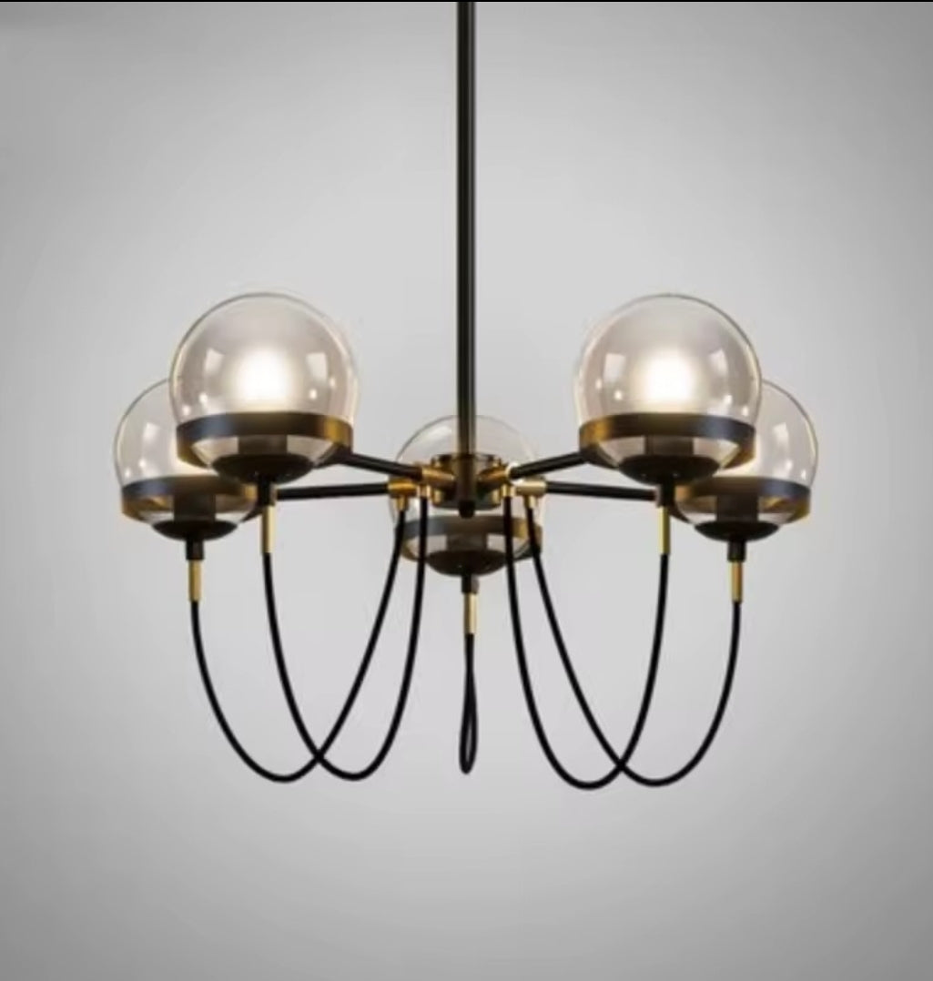 Gadarif Chandelier features a metal frame with a baked or electroplated finish and transparent glass. UL-certified for dry indoor use, it offers warm, comfortable light ideal for living and dining rooms. Professional installation is recommended.