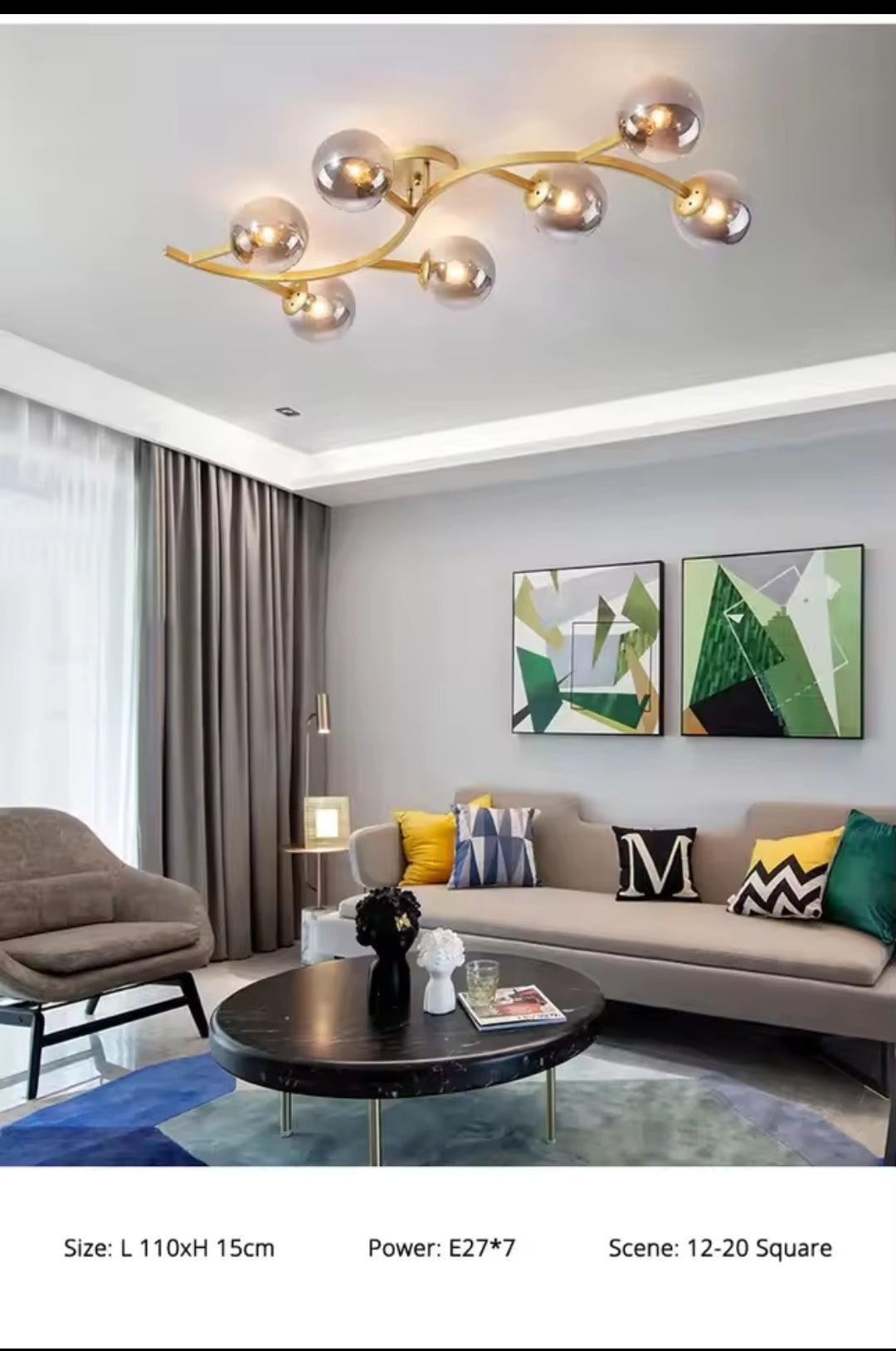 Shendi 7-Light modern glass ceiling light available in smoky grey and white .This elegant pendant light combines ahigh-quality metal lamp body with a stunning amber glass shade. The metal features an electroplated finish for smooth lines and a premium texture. The glass shade emits a soft, non-glare light that is environmentally friendly, creating a luxurious and atmospheric ambiance.